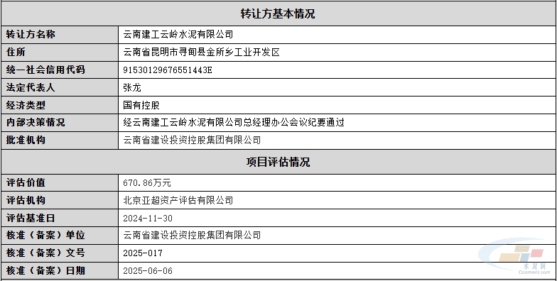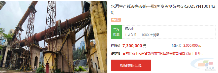 近日,根据相关平台显示,云南建工云岭水泥有限公司转让一批水泥生产线设备设施,转让底价为730万元。