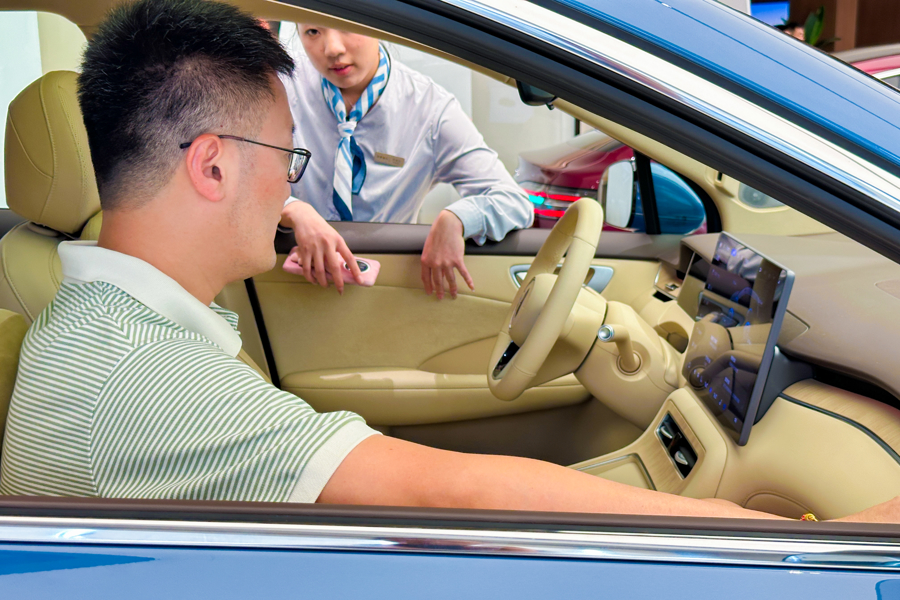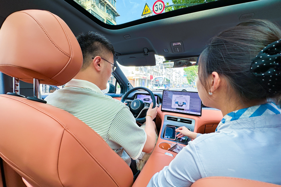 店内咖啡区座无虚席,不少消费者一边等待试驾,一边详细了解车辆配置。销售小冯介绍,不少客户此前已经付了定金,随着新车到店,长假期间门店迎来试驾高峰。“两家大厂背书,再加上补贴优惠、上市权益,消费者购车意愿较强。另外,我们店所在的徐汇区启动了第二轮汽车补贴名额,名额先到先得,对购车起到一定刺激作用。”